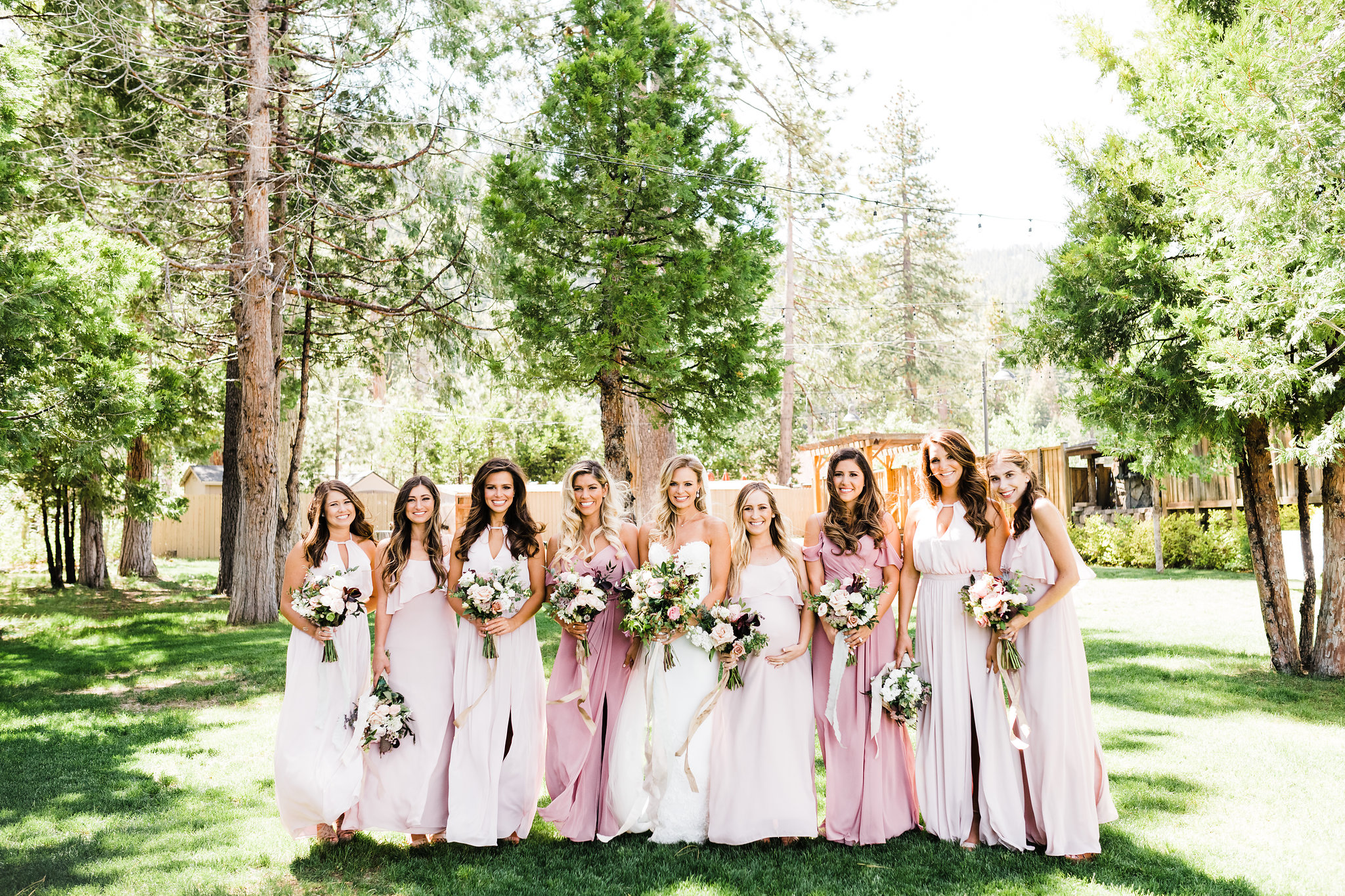 Bride with bridesmaids at West Shore Cafe